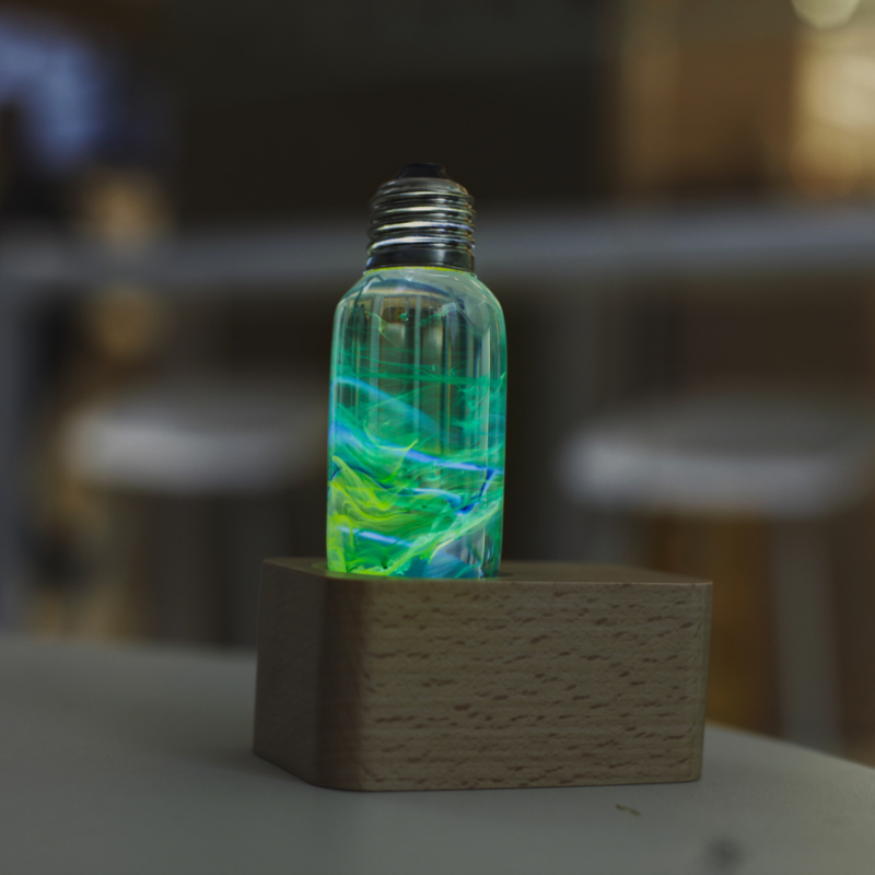 — Includes LED Bulb + Cube Wooden Base